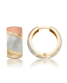 14K Gold Tri Color Satin and Diamond Cut Bold Huggie Hoop Earrings