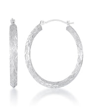 14K Gold Fancy Diamond Cut Square Tube Hoop Earrings-Yellow Gold