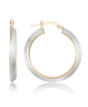 14K Gold Textured Modern Hoop Earrings. Made in Italy-Two-Tone