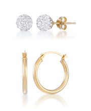 1/4 CT. T.W. Simulated Diamond Two Pair Earring Set with Ball Studs and Polished Round Hoops-14K Yellow Gold over Sterling Silver