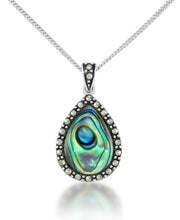 Tori Hill® Genuine Abalone and Marcasite Teardrop Pendant 18"-Sterling Silver
