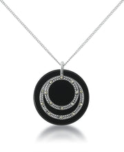 Tori Hill® Genuine Marcasite and Black Onyx Multi Circle Medalion Pendant, 18"-Sterling Silver