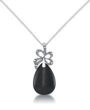 Tori Hill® Genuine Marcasite and Onyx Bow and Teardrop Pendant, 18"-Sterling Silver