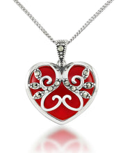 Tori Hill® Genuine Marcasite and Simulated Ruby Heart Pendant 18"-Sterling Silver