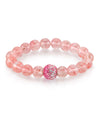 Genuine Rose Quartz Stretch Bracelet with Pink and White Diamond Color Crystal Glitter Ball