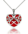 This Tori Hill® Sterling Silver Genuine Marcasite and Simulated Ruby Heart Pendant is a beautiful expression of love and elegance. The pendant features a vibrant simulated ruby heart, shining brilliantly through delicate sterling silver filigree adorned with genuine marcasite scrolls. Crafted with care and suspended from an 18" chain, this piece is the perfect gift for yourself or someone special, making it a timeless addition to any jewelry collection that captures the spirit of romance and charm.