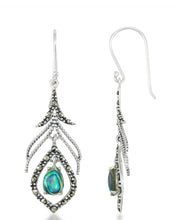 Tori Hill® Genuine Marcasite and Abalone Peacock Feather Dangle Earrings-Sterling Silver