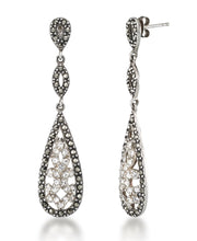 Tori Hill® Genuine Marcasite and Crystals Elongated Teardrop Dangle Earrings-Sterling Silver