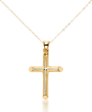 Gold Luxe® 14K Gold High Polished Cross Pendant, 18" Chain. Dent Resistant, Infused with Nano Diamond Resin Core®-Yellow Gold