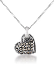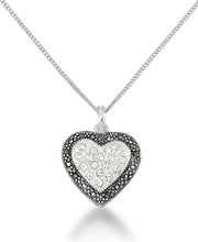 Tori Hill® Genuine Marcasite and Crystal Heart Pendant, 18" Chain-Sterling Silver