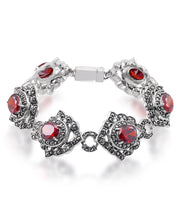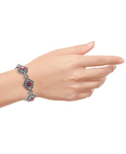 Tori Hill® Sterling Silver Genuine Marcasite Victorian Bracelet with Brilliant Simulated Rubies-Sterling Silver