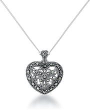 Tori Hill® Genuine Marcasite Victorian Heart Pendant, 18" Chain-Sterling Silver