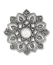 Tori Hill® Genuine Marcasite and Mother of Pearl Cluster Flower Broach-Sterling Silver