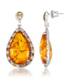 Amber Rosa™ Genuine Honey Amber Large Teardrop Dangle Earrings with White and Congac Simulated Diamond Frame