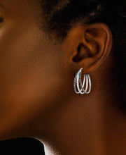 Diamond Fascination® Black & White Diamond Accent Triple Hoop Earrings-Platinum over Sterling Silver