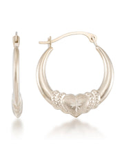10K Gold Satin & Diamond Cut Graduated Heart Hoop Earrings-Yellow Gold