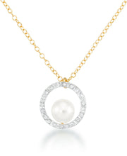 Diamond Fascination® Diamond Accent Circle Pendant with Genuine Cultured Pearl-18K Yellow Gold over Sterling Silver