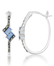 Tori Hill® Sterling Silver Genuine Marcasite and Simulated Blue Topaz Oval Hoop Earrings-Sterling Silver