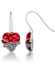 Tori Hill® Genuine Marcasite and Simulated Ruby Heart Dangle Earrings-Sterling Silver