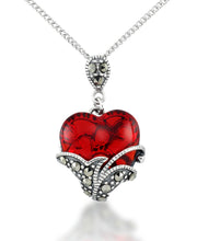Tori Hill® Genuine Marcasite and Simulated Ruby Heart Pendant 18"-Sterling Silver