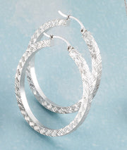 10K Gold Graduated Twist Hoop Earrings-White Gold
