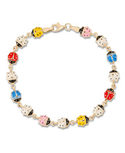Mulitcolor Ladybug Bracelet, 7"-14K Yellow Gold over Sterling Silver
