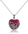 Tori Hill® Sterling Silver Genuine Marcasite and Simulated Ruby Filigree Heart Pendant, 18" Chain