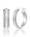 Make a statement with these Platinum over Sterling Silver bold oval hoop earrings, a dazzling display of Italian craftsmanship. Sculpted to perfection, their sleek, oversized silhouette radiates confidence, while brilliant glittery inlays catch the light with every turn. A modern take on a timeless classic, these hoops blend bold design with refined elegance, making them the ultimate accessory for effortless glamour. Made in Italy.