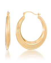 Graduated Ribbed Hoop Earrings-14K Yellow Gold over Sterling Silver