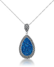 Tori Hill® Genuine Marcasite and Royal Blue Drusy Teardrop Pendant, 18" Chain-Sterling Silver