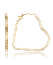 14K Gold Diamond Cut Heart Shape Hoop Earrings-Yellow Gold