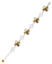 Amber Rosa™ Genuine Multicolor Amber Flower Adjustable Bracelet 7" with 1" Extender-Sterling Silver