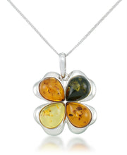 Amber Rosa™ Genuine Multicolor Amber Flower Pendant-Sterling Silver