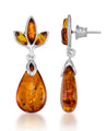 Amber Rosa™ Genuine Honey Amber Fleur De Lis Large Teardrop Dangle Earrings