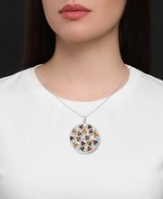 Amber Rosa™ Genuine Multicolor Amber Round Art Deco Pendant, 18"-Sterling Silver