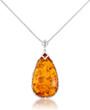 Amber Rosa™ Genuine Cognac Amber Large Teardrop Necklace with Adjustable Clasp-Sterling Silver