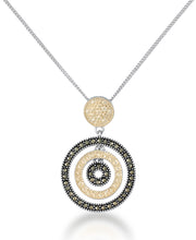 Tori Hill® 14K Yellow Gold over Sterling Silver Genuine Marcasite Multi Circle Pendant, 18" Chain-Two-Tone