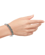 Tori Hill® Genuine Marcasite Braided Hinged Bangle, 7"-Sterling Silver