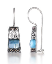 Tori Hill® Genuine Marcasite Simulated Aqua Dangle Earrings-Sterling Silver