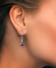 Bold Large Blue Teardrop Dangle Earrings with Rope Border-Platinum over Sterling Silver