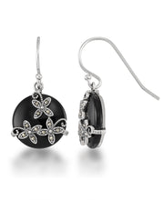 Tori Hill® Genuine Marcasite and Black Onyx Floral Round Dangle Earrings-Sterling Silver