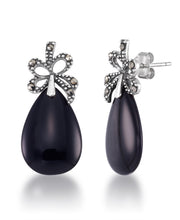 Tori Hill® Genuine Marcasite and Onyx Bow and Teardrop Dangle Earrings-Sterling Silver