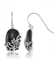 Tori Hill® Genuine Black Onyx and Marcasite Oval Dangle Earrings-Sterling Silver