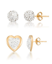 1/4. CT T.W. Simulated Diamond Two Pair Earring Set with Ball Studs and Heart Studs-14K Yellow Gold over Sterling Silver