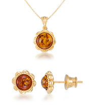 Amber Rosa™ Genuine Cognac Amber Etruscan Earrings and Pendant Set, 18"-18K Yellow Gold over Sterling Silver