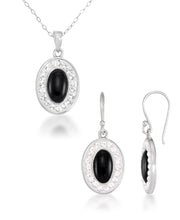 1/3 CT. T.W. Simulated Diamond and Onyx Earring and Pendant Set, 18"-Platinum over Sterling Silver