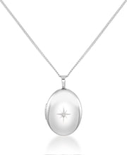 Oval Heart Locket with Diamond Accent, 18"-Platinum over Sterling Silver