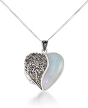 Tori Hill® Genuine Marcasite and Jade Heart Locket Pendant, 18" Chain-Sterling Silver