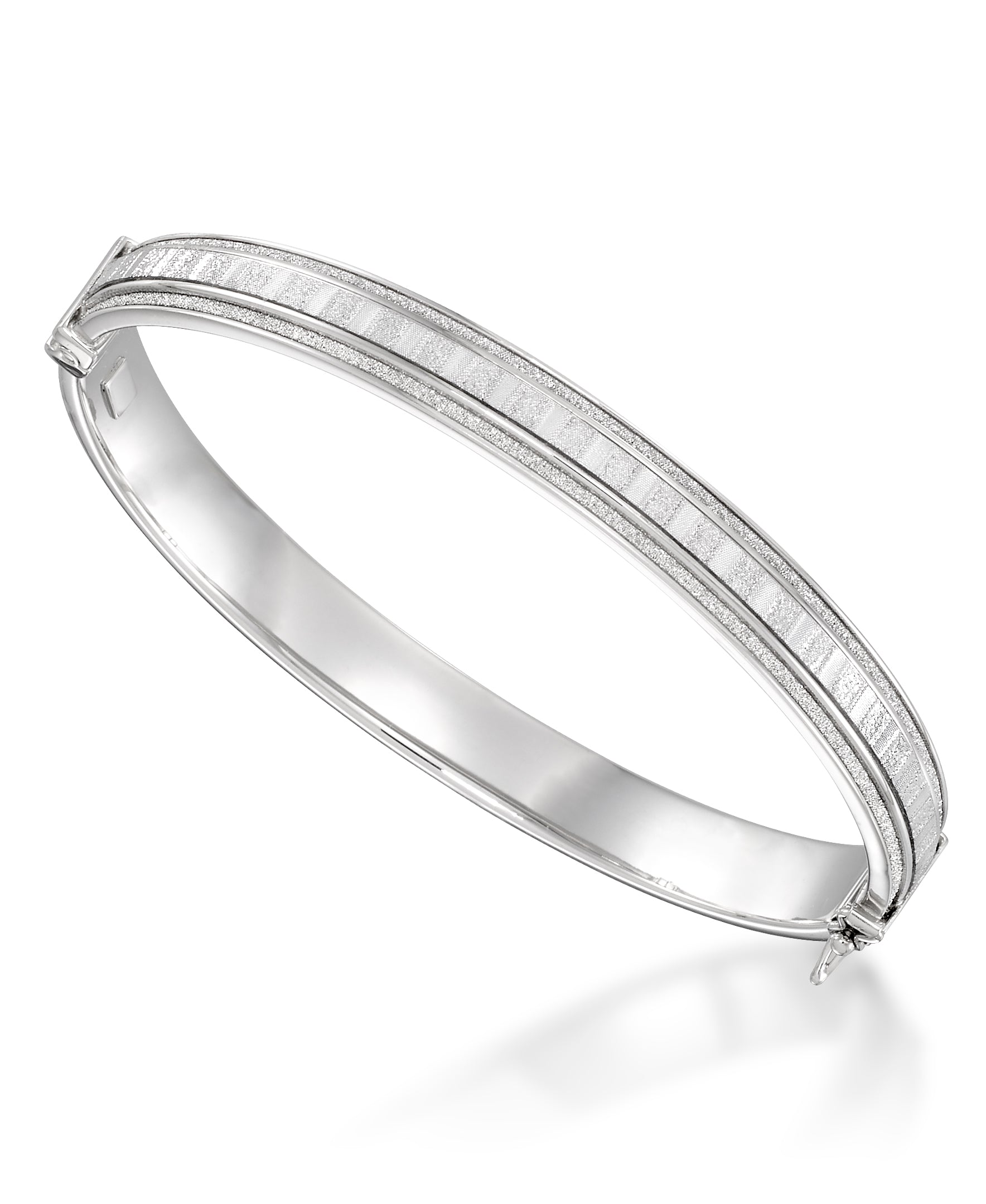 Wrap your wrist in brilliance with this Platinum over Sterling Silver bold bangle, a striking fusion of Italian artistry and modern sophistication. Designed for those who love to shine, its bold silhouette is adorned with brilliant glittery inlays that catch the light with every movement. Effortlessly chic, this statement bangle is the perfect finishing touch for any refined look. Made in Italy.