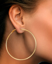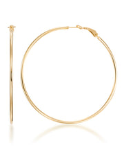 Extra Large High Polished Thin Round Hoop Earrings with Omega Back, Made in Italy-18K Yellow Gold over Sterling Silver